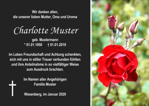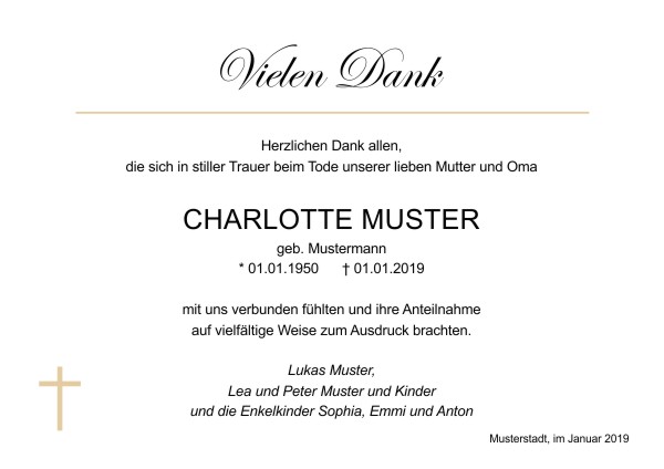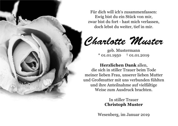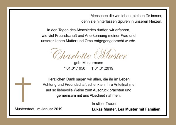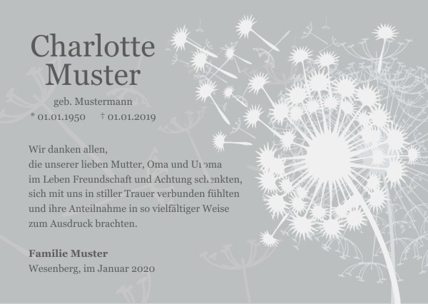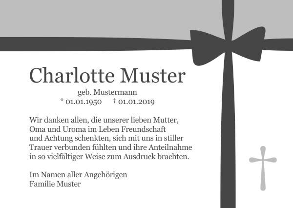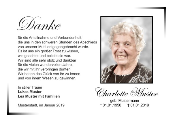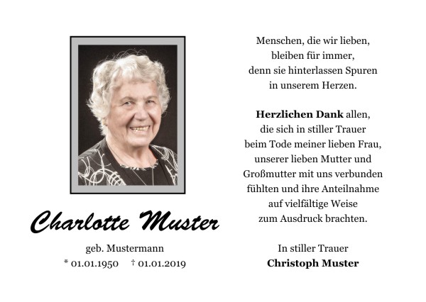 Persönliche Danksagung Trauer um Mutter, Vater, Oma und Opa. Schlichte Danksagung Trauer im Todesfall, Beerdigung, Trauerfall. Danksagungskarten Trauer, Dankeskarten, Trauerdanksagungen, Trauerkarten