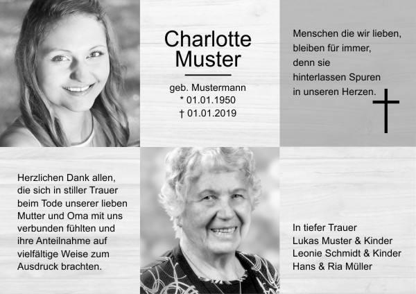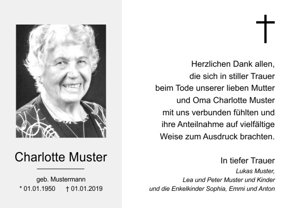 Persönliche Danksagung Trauer um Mutter, Vater, Oma und Opa. Schlichte Danksagung Trauer im Todesfall, Beerdigung, Trauerfall. Danksagungskarten Trauer, Dankeskarten, Trauerdanksagungen, Trauerkarten