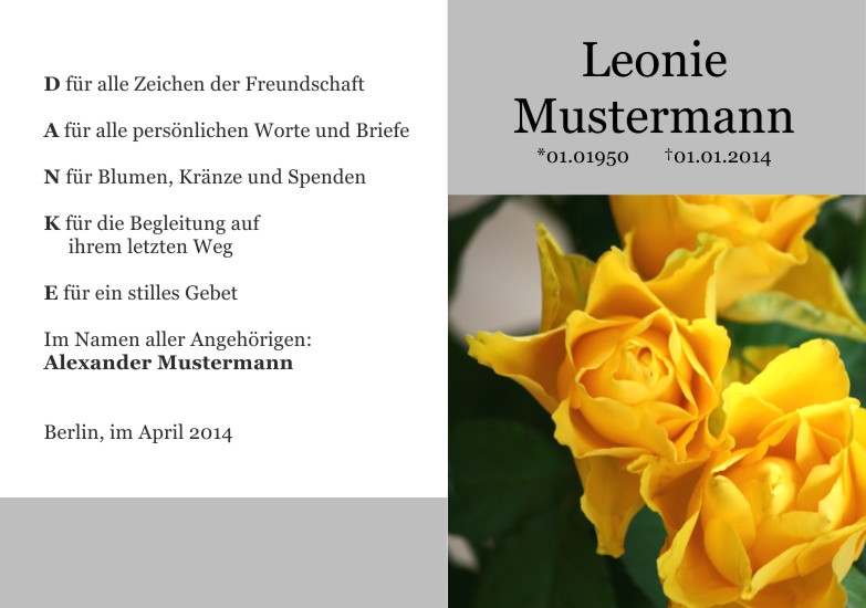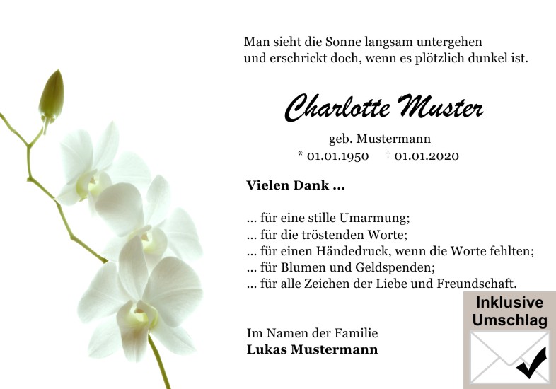 Persönliche Danksagung Trauer um Mutter, Vater, Oma und Opa. Schlichte Danksagung Trauer im Todesfall, Beerdigung, Trauerfall. Danksagungskarten Trauer, Dankeskarten, Trauerdanksagungen, Trauerkarten