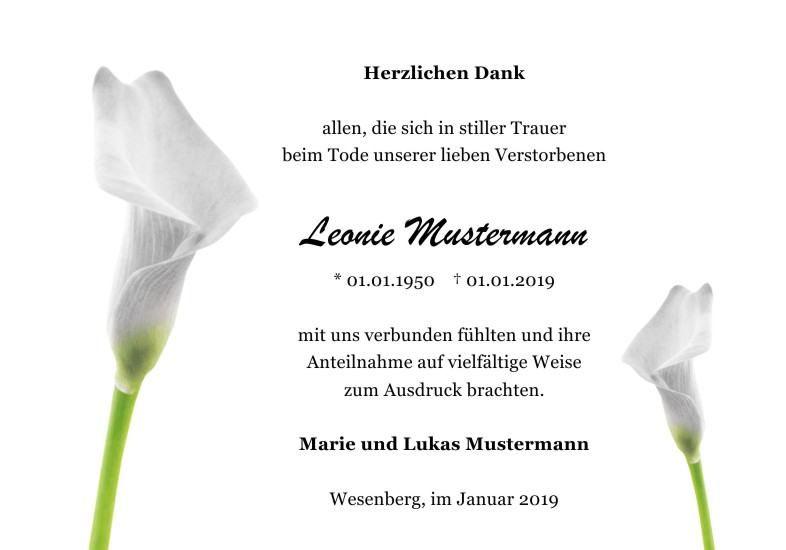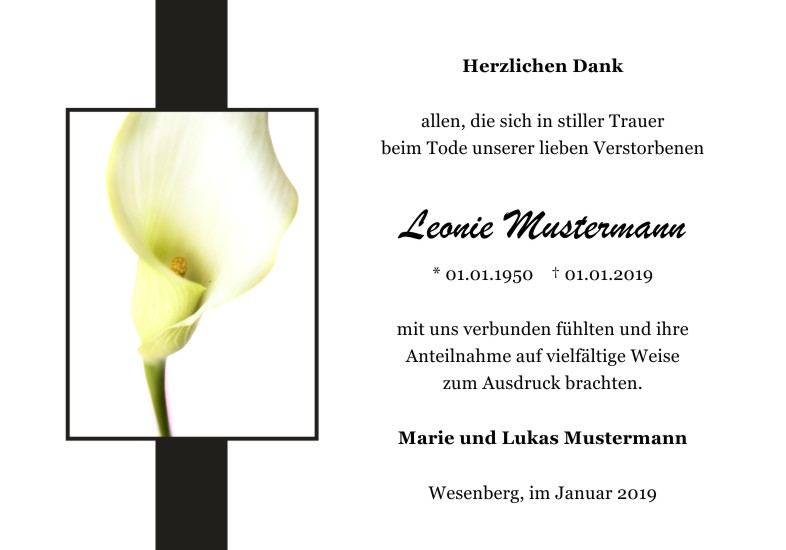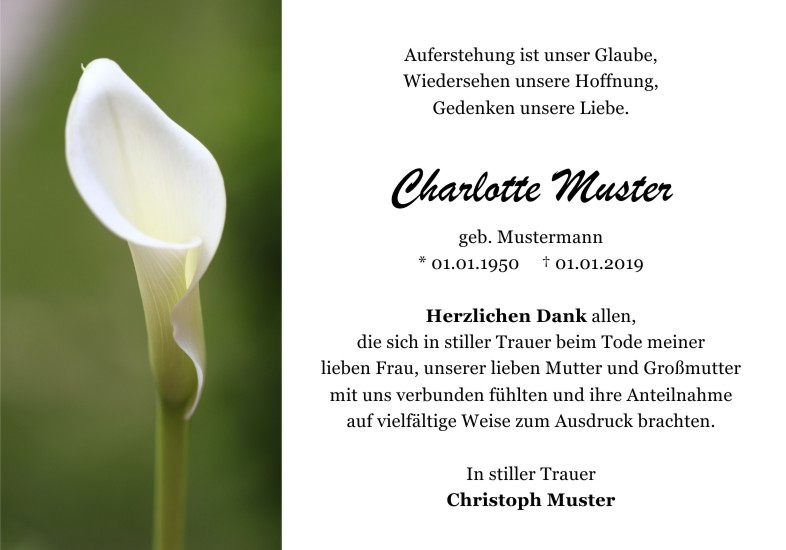 Persönliche Danksagung Trauer um Mutter, Vater, Oma und Opa. Schlichte Danksagung Trauer im Todesfall, Beerdigung, Trauerfall. Danksagungskarten Trauer, Dankeskarten, Trauerdanksagungen, Trauerkarten