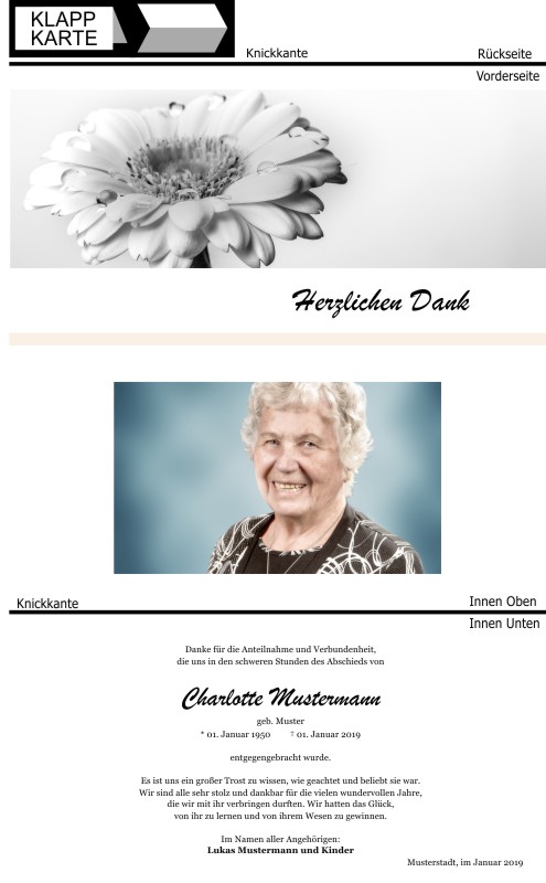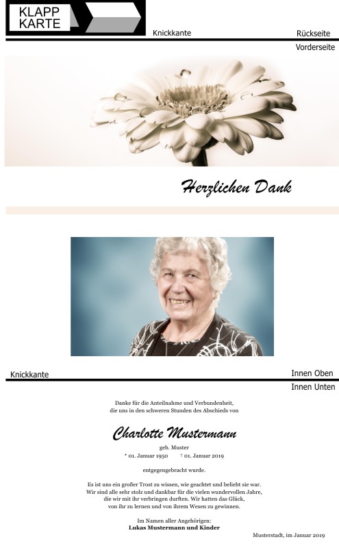 Persönliche Danksagung Trauer um Mutter, Vater, Oma und Opa. Schlichte Danksagung Trauer im Todesfall, Beerdigung, Trauerfall. Danksagungskarten Trauer, Dankeskarten, Trauerdanksagungen, Trauerkarten