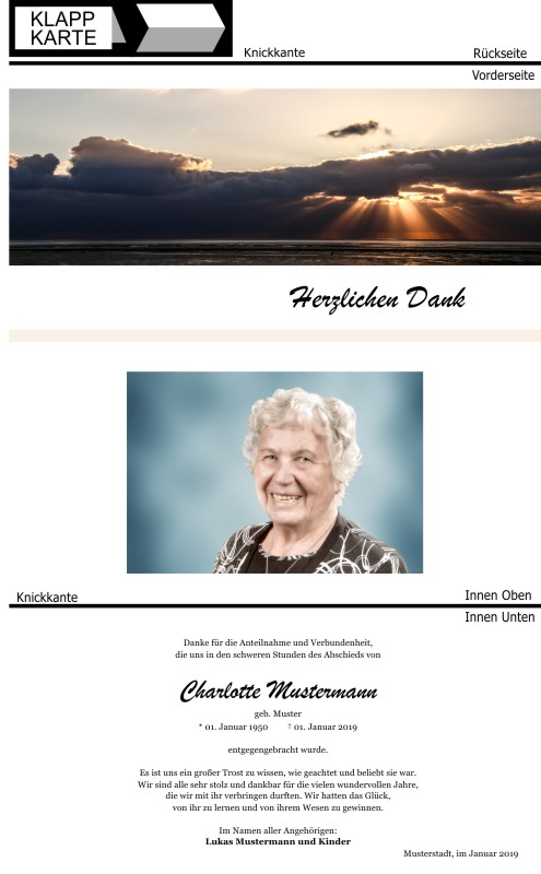 Persönliche Danksagung Trauer um Mutter, Vater, Oma und Opa. Schlichte Danksagung Trauer im Todesfall, Beerdigung, Trauerfall. Danksagungskarten Trauer, Dankeskarten, Trauerdanksagungen, Trauerkarten